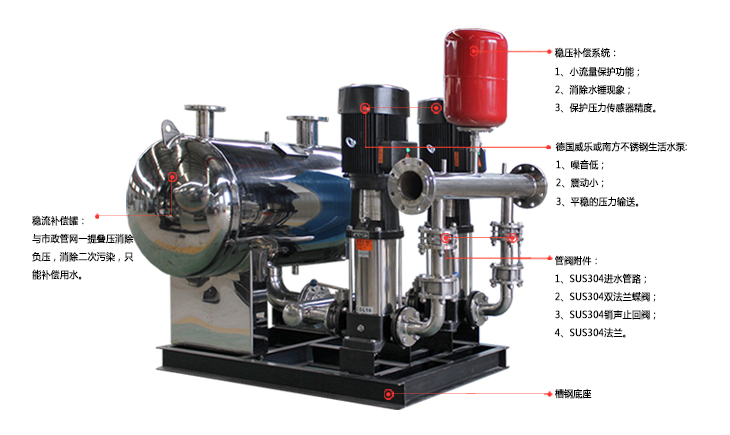 - 主要有穩流罐式和調節水箱式兩種。穩流罐式無儲備水量,而調節水箱式具備一定的儲備水量,適用于供水管網不穩定的區域。