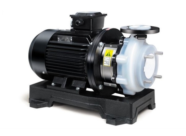 單級臥式氟塑料離心泵,配加長軸電機(jī),軸向入口和徑向出口,電機(jī)軸與葉輪為直聯(lián)式,過流部件均采用氟塑料(F26、F46)。